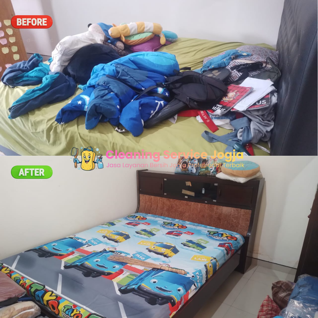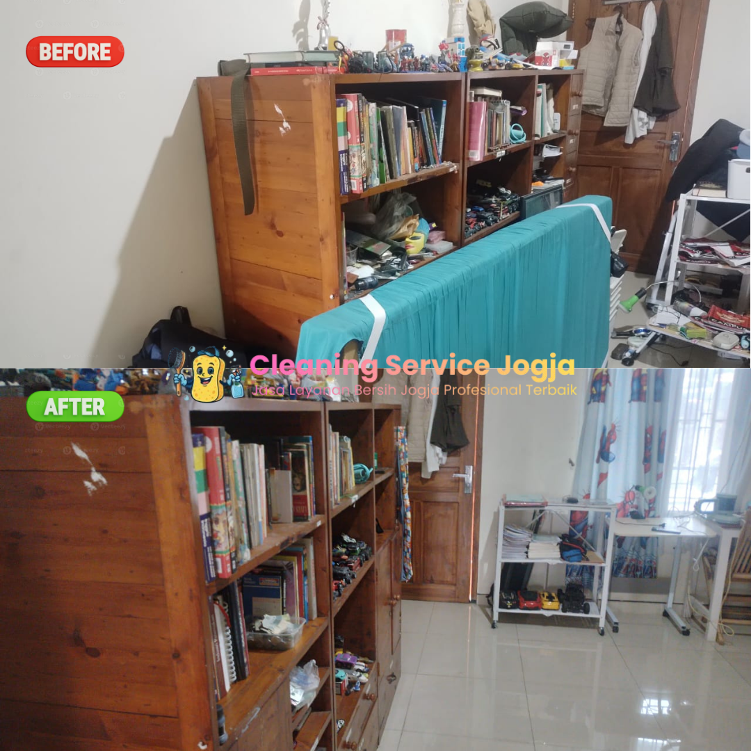 Dokumentasi before–after layanan cleaning di rumah, kost, apartemen, dan kantor oleh tim Cleaning Service Jogja.