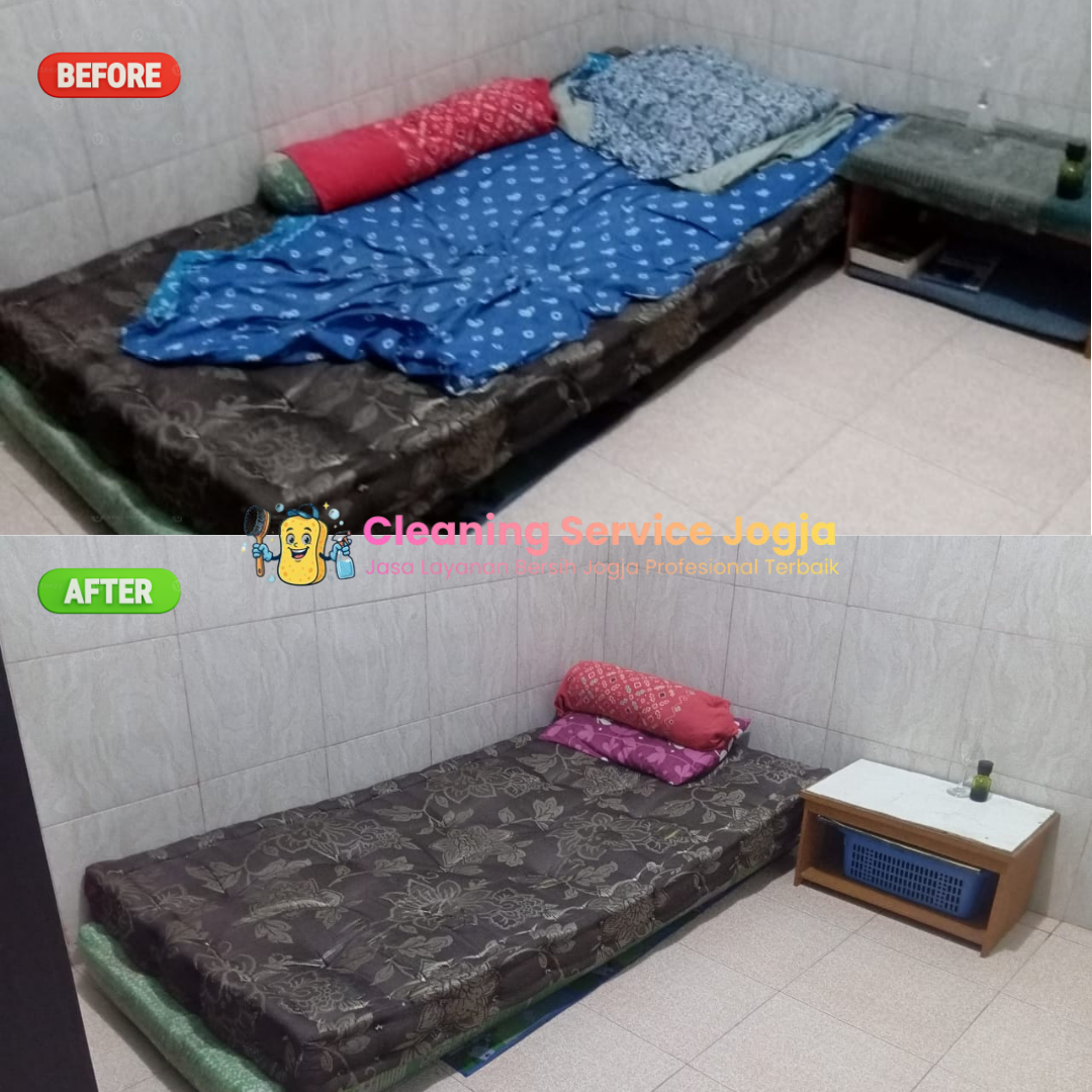 CleaningServiceJogja menyediakan layanan pembersihan kamar kost, rumah, apartemen, kantor, toilet, hingga sedot tungau – semua dikerjakan oleh tim profesional dengan peralatan lengkap.